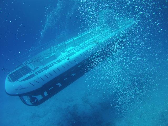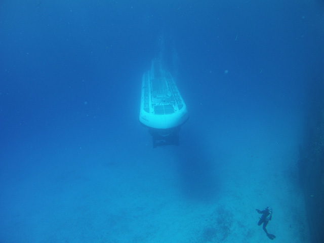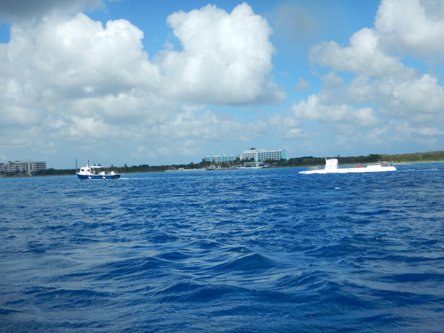 Back on the surface, we loaded back on the boat and were headed back to shore. Then we saw the submarine being towed across the surface. They told me that the submarine gets towed when it is on the surface.