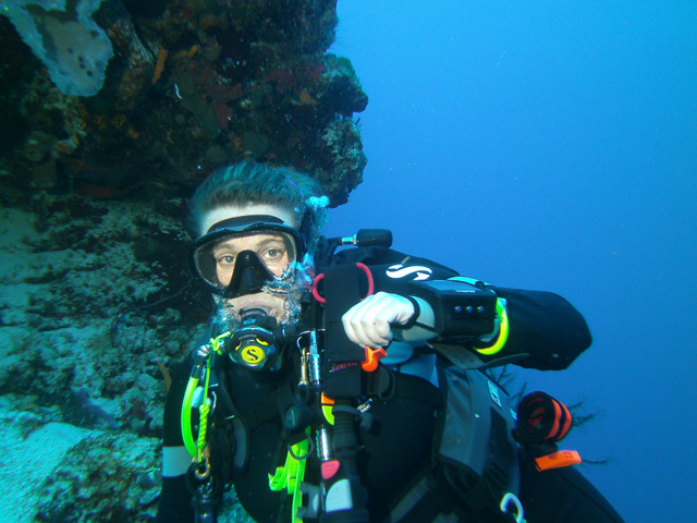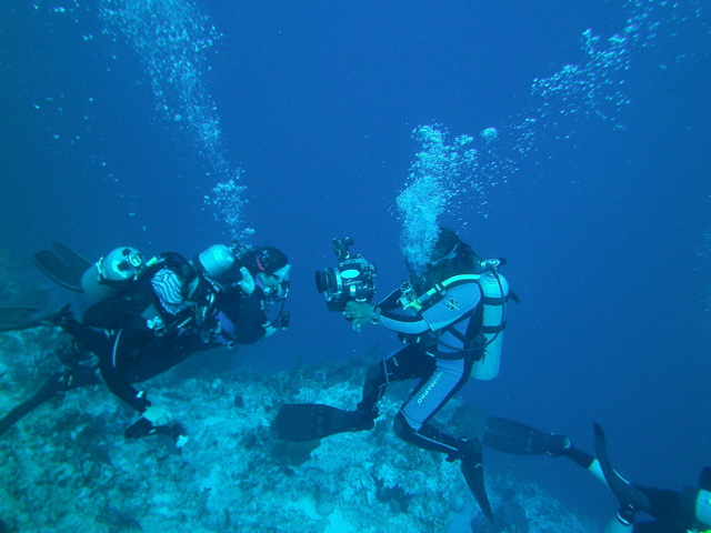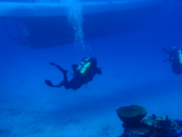 Okay anyway… the whole drift diving thing kept me from being able to pee. I had so much to concern myself with… So when you’re drift diving, if you get ahead of the group, go in behind some coral to slow down. Well I decided to pull it and pee. I was in front of the group anyway. So Deb swims up to see what I’m up to and takes my picture. The whole time I was peeing I was just hanging out there. So then everyone in our dive group swims up to see what exciting thing I’m looking at. And as you can see… it wasn’t much…. There’s also video and it’s funny to see everyone congregating around me to see what I was looking at.