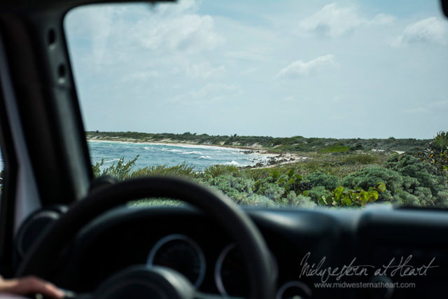 From what they tell me, typically all running around town/the island is done the last day, but our last day was Sunday. We were afraid some of the places we wanted to visit might be closed so we rented Jeeps on Friday afternoon and cruised the island (after getting back from diving, grabbing a bite to eat, and showering). I’m not sure about everyone else, but I had a blast doing that. Karen, Jared, Hubby, and I were in one vehicle, Deb, Grady, and Doug in another, and Dan, Carlene, and Rachele in the third. We had the top off our jeep and it was amazing.