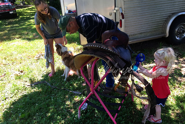 293/366 – Happy Father’s Day. My dad enjoying the company of his girls while cleaning saddles. While it may sound like work, he thoroughly enjoyed it.