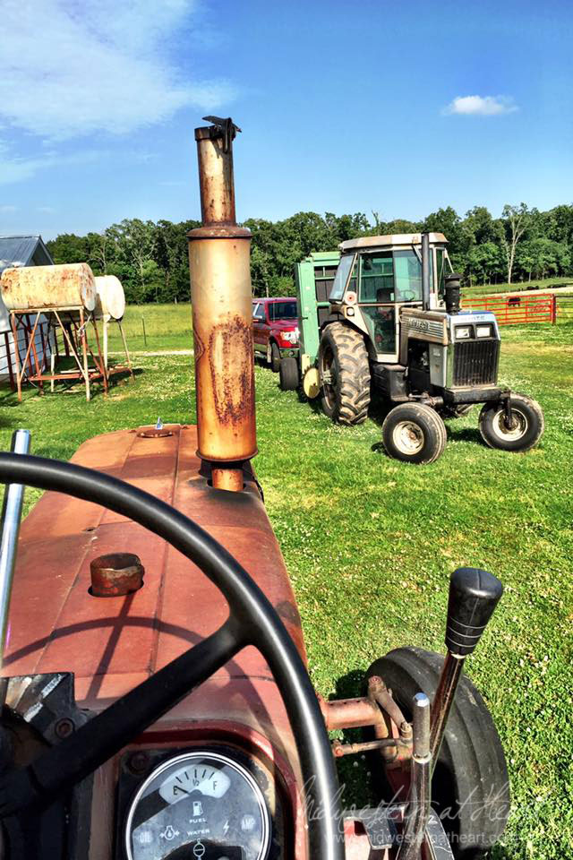 291/366 – Day 2 of this view. Today’s task, baling hay. It’s a tough job but someone has to do it. The big tractor didn’t work right so it was trusty old red.