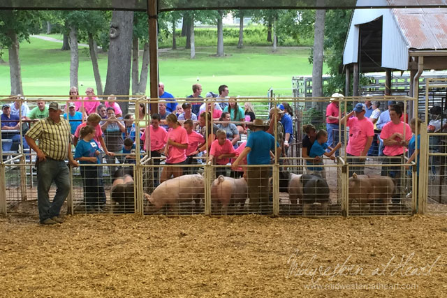 Friday night was the sale. This is where the Champions, Reserve Champions, and a certain number of other animals from each species are sold for “Premium Only.” What does that mean? Well the kids work so hard on their projects, if they make the Market sale, they “sell” their animal for a price. They don’t actually sell them, local businesses come in and “purchase” the animal. So the kid actually takes that animal home as well as a % of the money (a % of the money goes back to the fair for the next year) and the buyer takes home a photo of the animals they purchased.