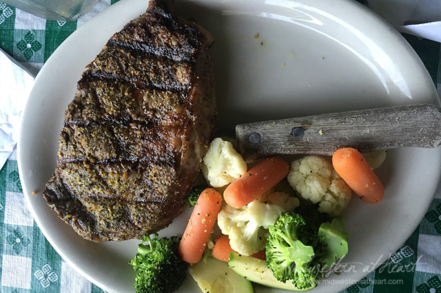 My mom got their Ribeye Sandwich minus the bread with a side of veggies. That steak looked really good and Abug ate it up.