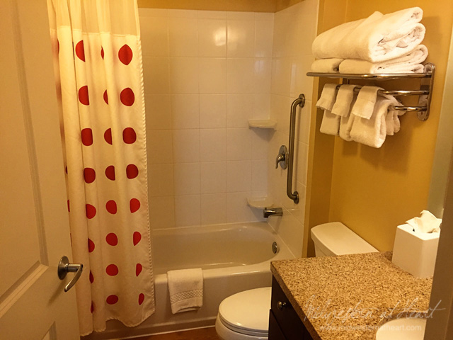 This hotel is located close to the airport so I’m sure it sees a lot of business people coming through so this hotel is set up with a work station as well as a small kitchen area/full sized refrigerator. And just so you know, there is a Target just around the corner and Walmart isn’t far off :).