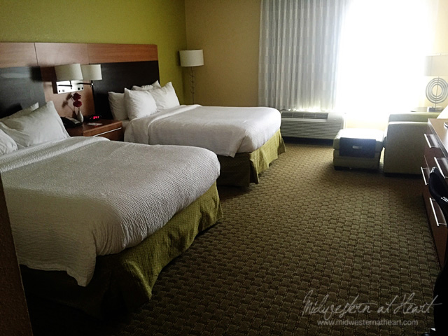This was our hotel room. I have to admit, the beds were comfortable, the pillows were okay (I’m a picky pillow person), and the air conditioner worked GREAT!
