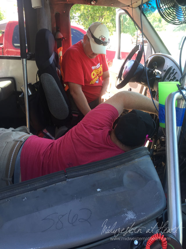 I’m not sure this is something you want to see so far from home… the guys working on the bus.