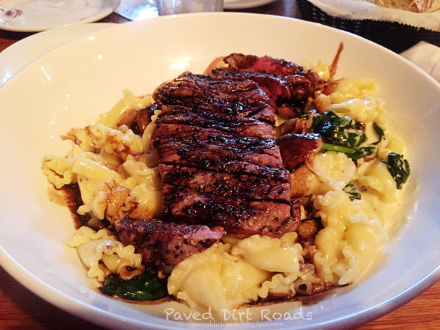So this is my meal. I ordered Steak Gorgonzola Pasta. Now the waiter said that any of the pastas already made had no substitutions. If you wanted something or wanted something left off, build your own pasta was the route to go.