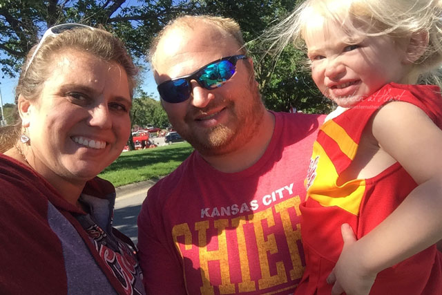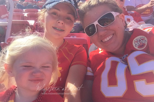 I swear there are days we need our heads examined. Noon game and we were up at 4 to head to Kansas City so we could tailgate. Oy! Seriously, check our heads!