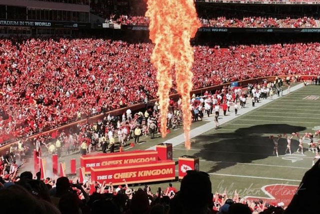 So within the first like 3-4 minutes of the game, there was a 3 point field goal kicked for the Chiefs. It looked like it might be a good game. Then for the next 4 quarters the most excitement we saw until the last 6 minutes of the game was the popcorn (which was good) and the fight that almost broke out either the end of 3rd quarter or the beginning of 4th quarter in our section of the stadium. The refs called a lot of weird calls and our team couldn’t get their head out of the butt. Then, the last 6 minutes of the game, something changed and we started making a comeback. We tied it up with 1 minute or so left on the clock and after the officials described what would happen for a potential overtime, we went into a 5th quarter to Win the game!!! And this picture is before halftime so I gave away the ending… lol.