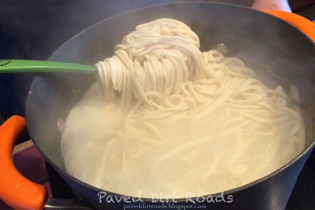 - Salt your water, bring to a boil, and cook your noodles 18-20 minutes.