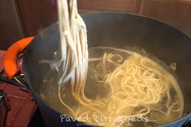 - Cut into pieces. if you’re using a knife, cut as thin as you can. My cutter made uniform noodles.