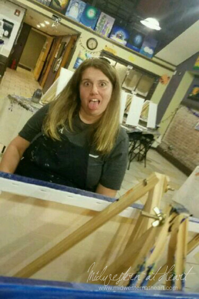 Ultimately I blame Jillian for this want I have to paint. She’s always blogging about how she and her friends attend paint nights and she always does a fantastic job too, I might add. I thought it sounded like a blast. Then a friend of mine hit me up about a big group of us attending a paint night one night to try. Well that was a year ago and we still hadn’t looked in to it. Finally another friend brought up something… maybe posted on her facebook page something about one of those paint night places around here and I hit her up about it.