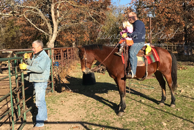 After we got the turkey in the oven, we were kind of twiddling our thumbs like usual. There wasn’t a whole lot to do right away so we decided to go saddle up Kansas and go for a ride. Abug didn’t object.