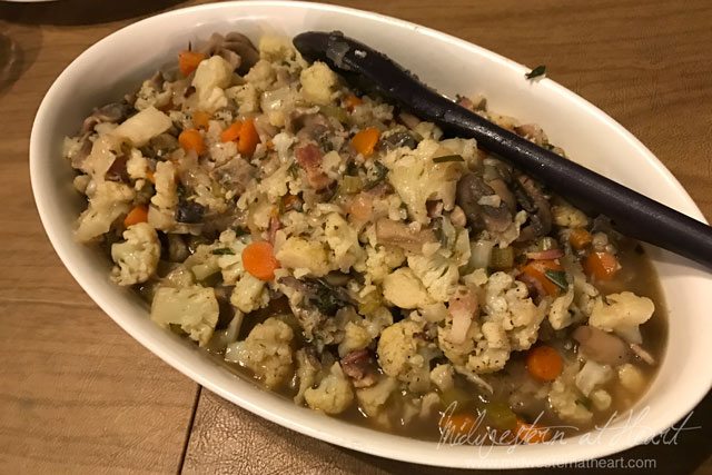 Did you see the Cauliflower stuffing going around Facebook? We made it and HOLY COW it was so scrumptious.
