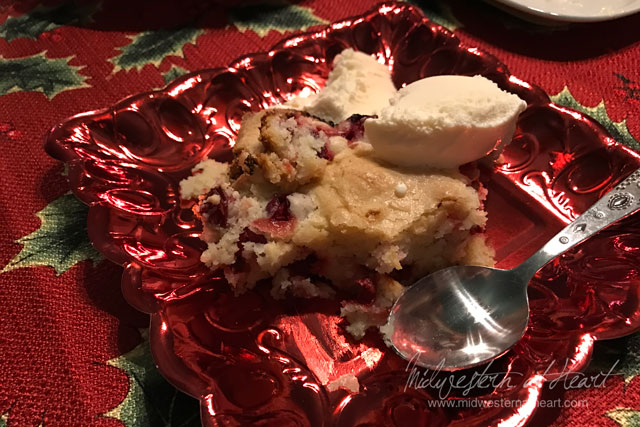 So for dinner we had ribs, rolls, green bean casserole, grandma’s corn casserole, and for dessert Cranberry Christmas Cake with häagen dazs ice cream.