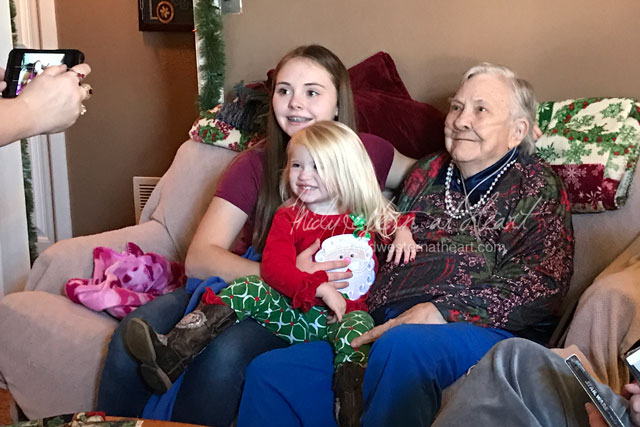 Then we worked on pictures of all the grandkids with Grandma. Sadly it feels like his aunt does everything to keep me out of family pictures and this year was no different. The way it happened, after we left, then they started in on the family pictures. Now that excluded hubby and the girls too, so it wasn’t just me. Oh well…. This makes the 3rd year.