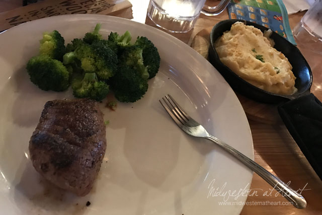 I went with a New York Strip, medium rare, and a side of broccoli. The Strip was okay. It was cooked perfectly but it wasn’t my favorite steak I had down there. Now my dad said his Sirloin was the best he’d had so maybe I should have stuck with the sirloin like I initially thought about getting.