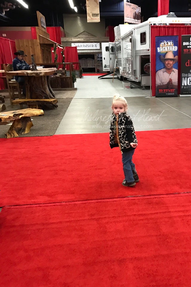 From there we went and checked into our hotel before heading off to Will Roger’s Coliseum. When we got there, the show hadn’t started yet so we went and wandered around the trade show. Sadly this year it seemed smaller than it was last year, or at least a lot of different vendors than normal. We also had this little one as your leader. She was boasting with energy after sitting in a van for 7 hours…. if you can only imagine.