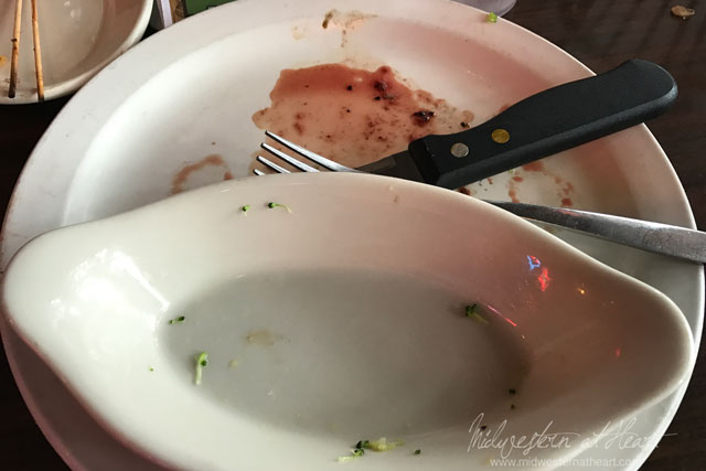 And my steak. Oh wait, this is an empty plate… I guess that means it was good, right? I went with a Sirloin, medium rare, and a side of broccoli.
