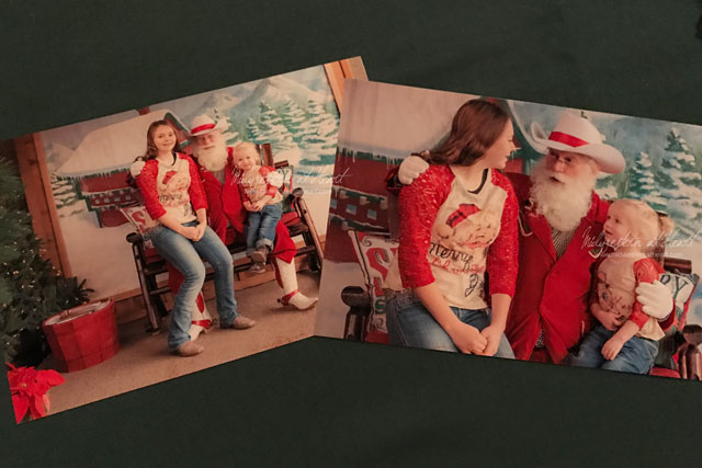 From there, we ventured down to the Stock Yards to do a little shopping and take the girls to see Santa possibly. I saw on a Facebook group that if you went to the Stock Yards Santa they not only got their picture taken (for $10) but also got a coloring book and a stuffed horse. And sad to say, the picture was better than the picture that was taken the night before with the trade show Santa.