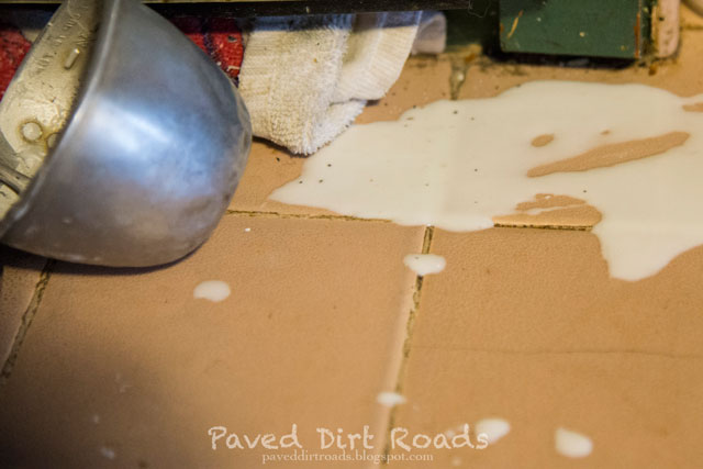 I ran to take this picture and when I came back I knocked my slurry over that was made up for my cherry filling. I had to clean up my mess and make a new slurry. That’s how it wound up on my boot….