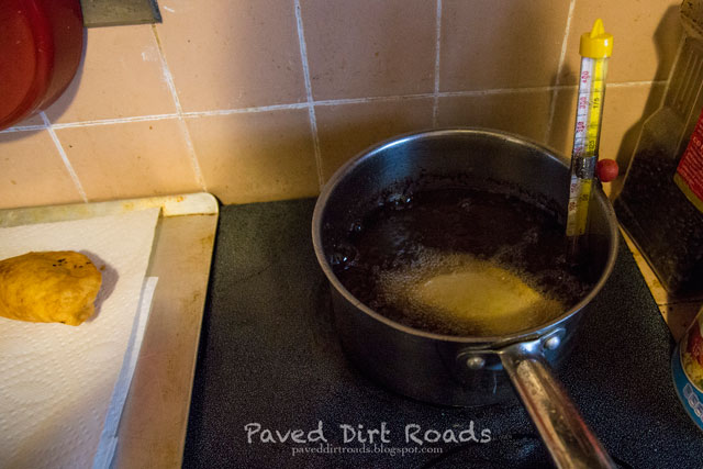 Once your shortening is melted, it’s time to fry those pies. Basically we put them in long enough for the dough to turn a golden color and then out they came. We were surprised, it was like a minute or 2 and that was it.