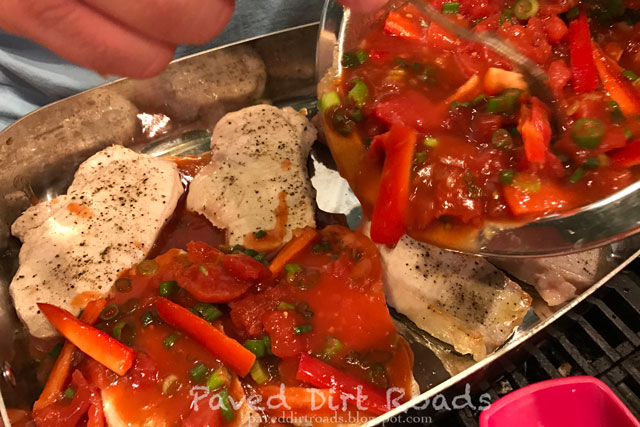 I’m not sure how my dad came up with this recipe… maybe surfing the web, maybe through an email, I really don’t know… but one day this week he started reading off a list of ingredients to me asking if we had them. We had everything but pork chops and green onions.