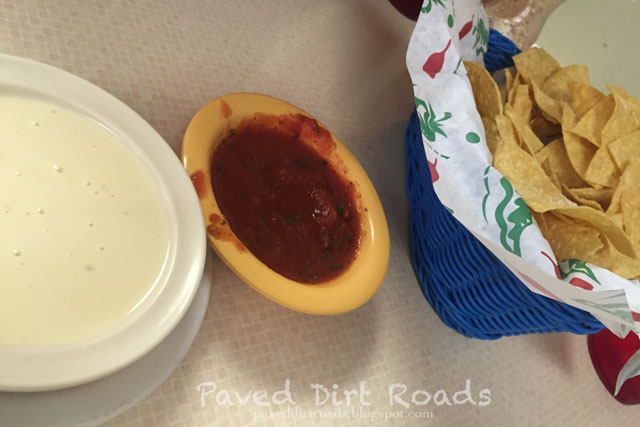 Mark got home from work and we were discussing dinner. I mentioned those nachos and we decided to go to Rancho Grande in Carthage. We haven’t been there for a while so it was time to revisit it. We started with Chips and salsa like most Mexican restaurants and ordered a small cup of Queso.