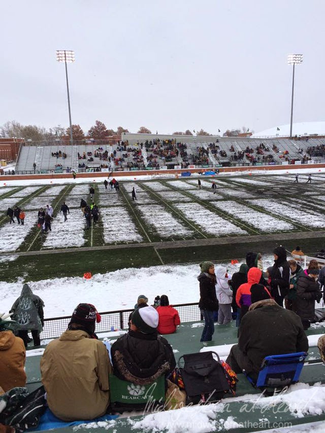 Saturday was cold… Sunday was cold too, but Saturday was cold. I mentioned yesterday that it was supposed to snow on Saturday in Kansas City. It did but not like the predictions said but Maryville got it. My friends were at the Northwest Missouri game which was supposed to be played at Chiefs stadium but the game was moved north as the stadium was going to tarp the field for Sunday’s game. After the game, Dan, Carlene and Danielle met us for dinner in Raymore.