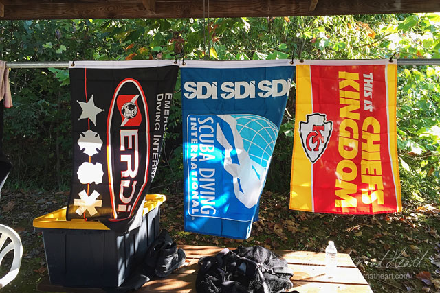 So we are certified divers through SDI where Mermet Springs is PADI. It’s just different agencies. But we had to not only represent our diving… but come on… Chiefs played Sunday and we have 2 Red Coaters who dive with us (or should I say we dive with them?)… we sooooooo had to represent!